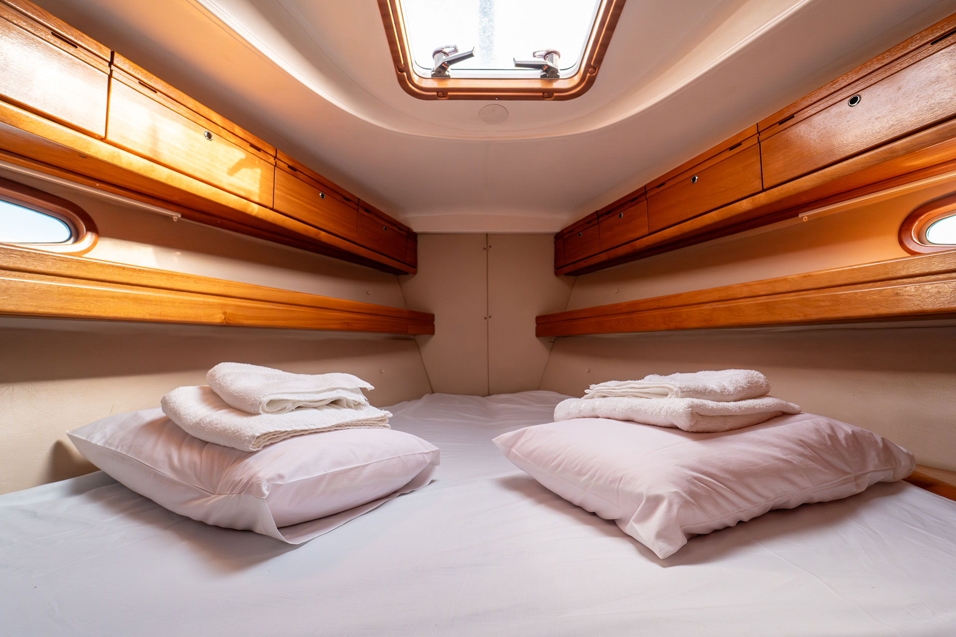 The Bavaria 39 Cruiser is one of the darlings of the Bavaria range. This boat has everything of the stylish interior of a larger yacht with 3 wide cabins, 2 spacious WC and a wide saloon. The large sail area will provide a unique sailing experience.